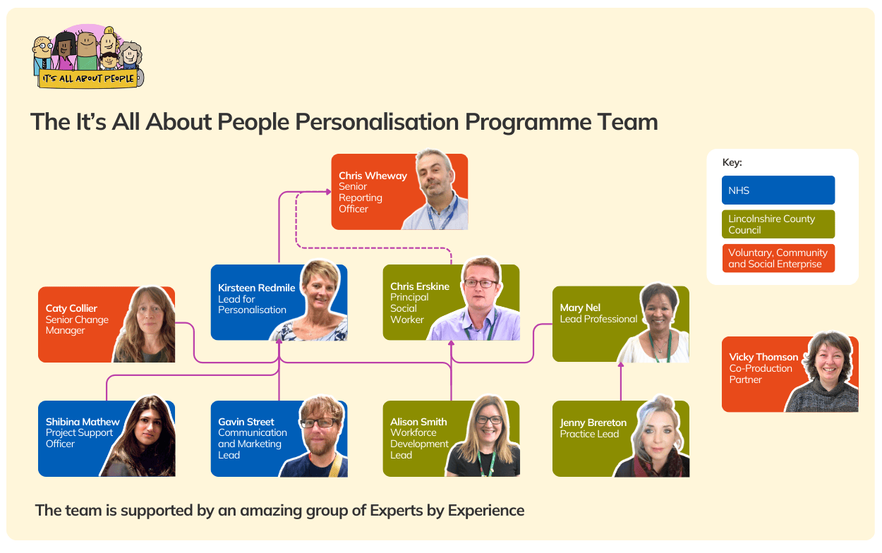 The It's All About People Personalisation Programme team has been specially established to embed personalisation and strengths-based approaches across Lincolnshire’s integrated health, care, and wellbeing system.