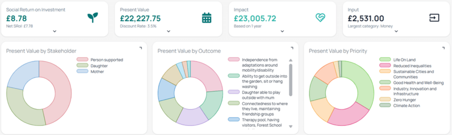 A Social Value Engine analysis of two personalised care stories collected using the People’s Stories Template has shown a social return on investment of between £8.78 - £12.09 per £1 spent. Please note that these are estimated values based on currently available data using observed and self-reported outcomes.